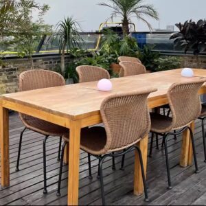 Beberapa kursi rotan dan metal POJAHOME dengan finishing tahan cuaca cocok untuk teras atau patio. Selalu simpan atau tutupi saat hujan untuk menjaga kualitas dan umur panjang.