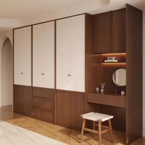 Jaga kerapian dengan lemari pakaian minimalis yang stylish dan modern. Desain simpel dan elegan ini menawarkan ruang penyimpanan maksimal untuk menjaga kamar tetap rapi dan indah.